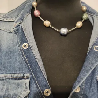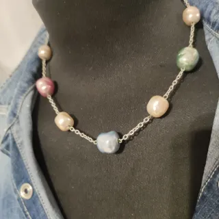 Elegante collar con perlas de Mallorca. Un accesorio llamativo y versátil. - Diseño con perlas de diferentes colores. - Cadena plateada. - Cierre seguro.