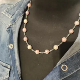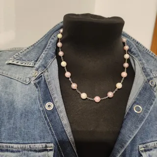 Elegante collar con perlas de Mallorca. Un accesorio delicado que aporta un toque de distinción. - Perlas de Mallorca de tonos rosados y blancos. - Cadena fina y plateada.
