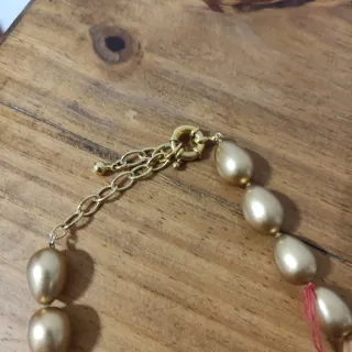 Elegante collar de perlas de Mallorca con un acabado dorado. Un accesorio clásico que aporta un toque de sofisticación. - Perlas de estilo ovalado. - Cierre de cadena ajustable.