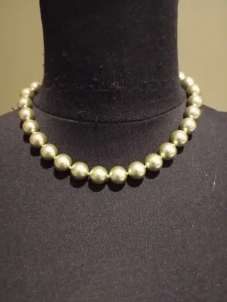 Elegante collar de perlas de Mallorca con un bonito tono verde oliva. - Perlas de alta calidad. - Diseño clásico y atemporal. -Cierre regulable.