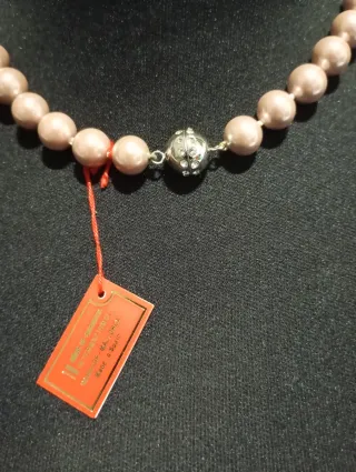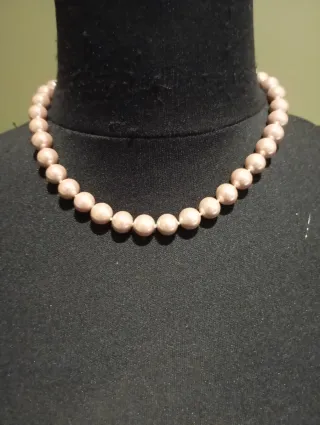 Elegante collar de perlas de Mallorca. Un accesorio clásico que aporta un toque de distinción. - Perlas de tono rosado. - Diseño atemporal. -Cierre muy elegante con incrustaciones de cristales blancos.