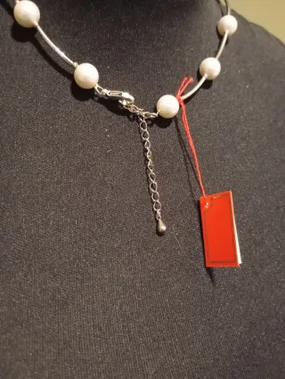 Elegante collar con perlas sinteticas y detalles plateados. - Perlas sinteticas. - Diseño moderno y delicado.