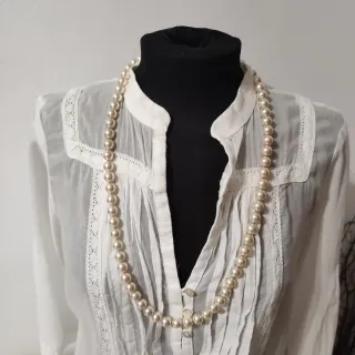 Elegante collar de perlas de madreperla con un cierre dorado. Varios tamaños de perlas - Perlas de color crema nacarado. - Cierre de metal dorado.