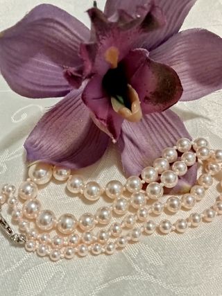 Elegante collar de perlas de agua dulce de Madagascar. Las perlas son de un bonito tono rosa y de diferentes tamaños, creando un diseño único. - Perlas veritables quartz de agua dulce - Diseño de diferentes tamaños. Atraer el l amor sincero ✨ 1. Equilibrio emocional y ternura La perla rosa calma las emociones intensas, sana las heridas del corazón y aporta dulzura a las relaciones. Es ideal para quienes desean volver a amar con serenidad, sin perderse en el proceso. 💞 2. Confianza y amor propio Ayuda a reconectar con la autoestima, la autoaceptación y la belleza interior.