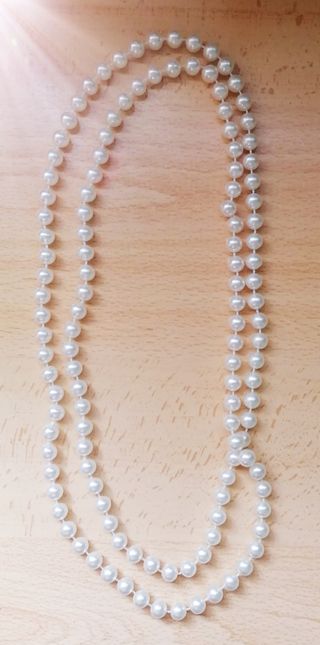 Elegante collar de perlas blancas. Ideal para cualquier ocasión. - Longitud aproximada: 47 centímetros. - Perlas de apariencia lisa y uniforme.