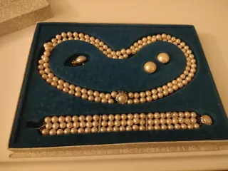Elegante conjunto de bisutería con perlas. - Collar de perlas. - Pendientes a juego. - Pulsera de perlas.