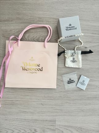 Elegante collar de perlas de Vivienne Westwood. - Cierre de plata. - Detalle del logo de Vivienne Westwood.