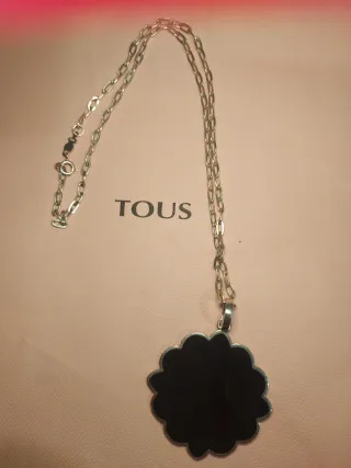 Elegante collar de la marca Tous con un colgante de diseño. - Colgante con un diámetro de 5 cm. Reversible - Cadena de plata.