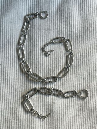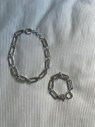 Conjunto de collar y pulsera de la marca Malababa. - Diseño de eslabones alargados. - Cierre de mosquetón en el collar. - Cierre de T en la pulsera.