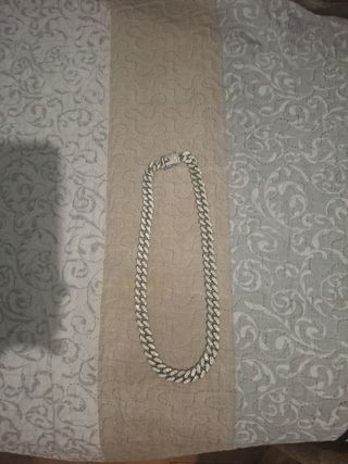 Elegante collar con un diseño de eslabones cubanos adornado con pequeñas incrustaciones brillantes. Cierre de seguridad. - Diseño de eslabones cubanos. - Incrustaciones brillantes.