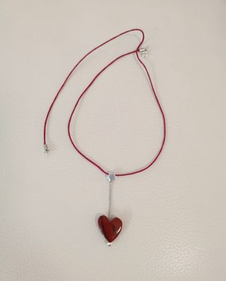 Precioso collar con cordón y colgante. - Colgante con forma de corazón. - Detalles en plata.