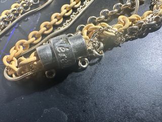 Collar llamativo con eslabones grandes y un colgante. - Diseño de cadena gruesa. - Combinación de tonos plateados y dorados. - Colgante ovalado. - Regalo bolsita.