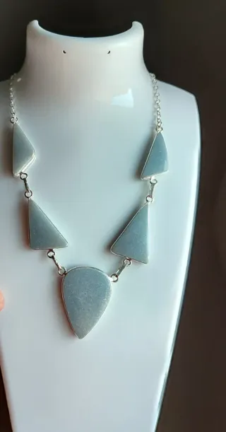 Elegante collar con colgantes de durmorterita y cadena de plata. - Diseño geométrico con piezas triangulares y una central en forma de lágrima. - Cadena fina y delicada.
