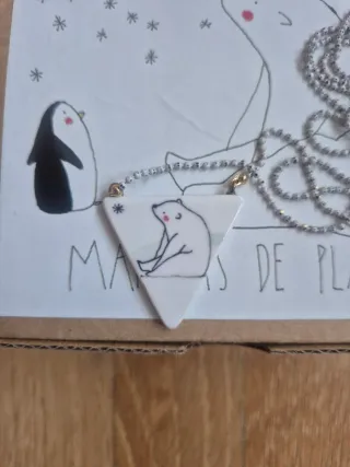 Collar con colgante triangular y diseño de oso polar. - Colgante con forma triangular. - Detalle de oso polar.