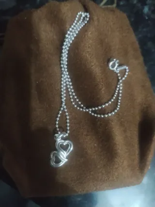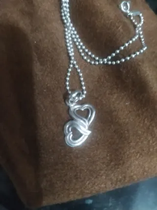 Elegante collar de plata con un diseño de dos corazones entrelazados que significa amor eterno . - Colgante con forma de dos corazones. - Cadena de bolitas.se entrega en cajita .