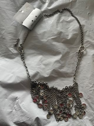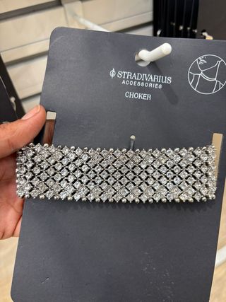 Elegante collar de Stradivarius con un diseño de pedrería brillante. - Diseño de red con cristales. - Acabado plateado. Usado una única vez y comprado por 15 €