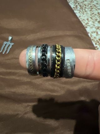 Perdonen que nose que talla son lo siento mucho pero de ley queda en algun dedo :,) - Un colgante con diseño de Monster - cuatro anillos de diferentes estilos.