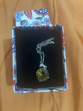 Elegante collar de plata con una piedra central de color amarillo. La cadena es fina y delicada, perfecta para el día a día o para ocasiones especiales. - Material: Plata - Piedra: Color amarillo
