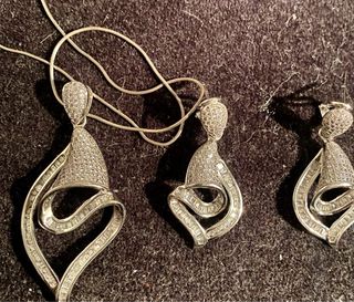 Elegante conjunto de joyería de plata. - Diseño inspirado en atrapasueños. - Colgante con cadena 45 cm. - Pendientes a juego.