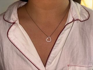 Elegante collar con un delicado colgante en forma de corazón. La cadena es fina y brillante, perfecta para el día a día o para ocasiones especiales. - Diseño de corazón con detalles. - Cadena fina y plateada.