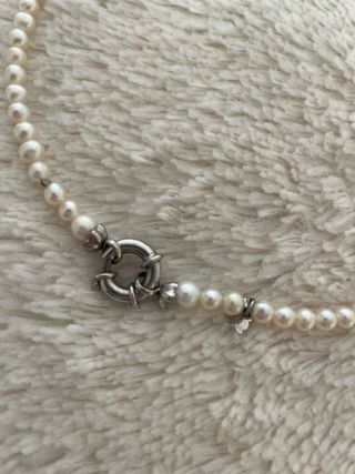 Elegante collar gargantilla con perlas de nylon y cierre de plata. - Perlas de diferentes tonos. - Cierre de plata.