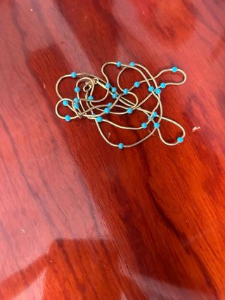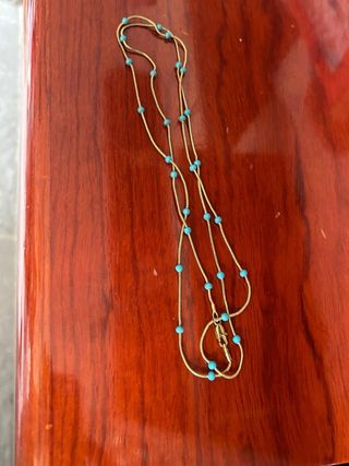 Elegante collar de plata con pequeñas cuentas turquesas intercaladas. La cadena es fina y delicada, perfecta para añadir un toque de color a cualquier atuendo. - Diseño con cuentas turquesas. - Cadena de plata.