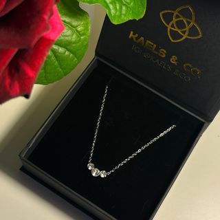 Elegante collar de plata con un diseño delicado. La cadena fina se complementa con tres pequeñas circonitas que aportan un toque de brillo. chapado oro 18k Acero Inoxidable - Cadena de plata. - Tres circonitas engarzadas.