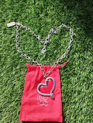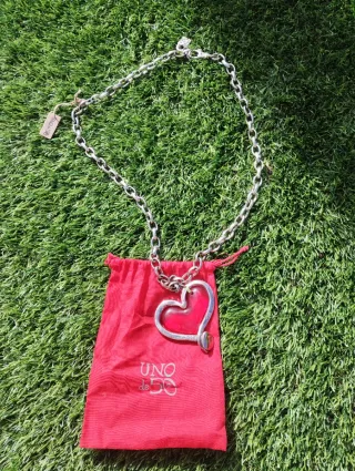 Collar con un llamativo diseño de corazón. - Colgante con forma de corazón. - Cadena de eslabones plateados. - Cierre de mosquetón. No negociable