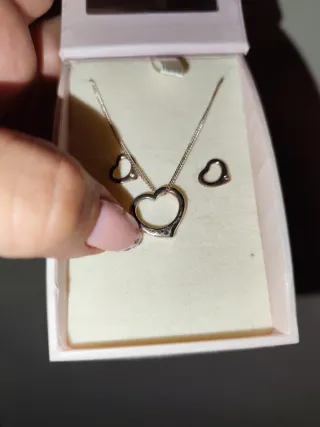 Conjunto collar y pendientes corazón plata