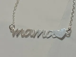 Elegante collar con la palabra 'mama' y un detalle de corazón. Cadena fina. Ideal día de la madre, madre e hija etc. En mi perfil tengo otro colgante y otra pulsera con un diseño similar.