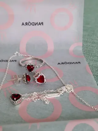 Conjunto Pandora Corazón Rojo y Plata