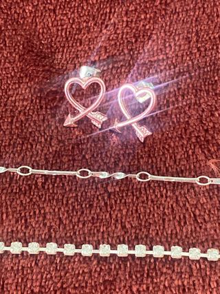 Elegante conjunto de joyería con diseño de corazones.Replica de calidad - Collar con colgantes de corazón. - Pulsera a juego. - Pendientes. - Broches. Puedes pedirme para reserva un saludo