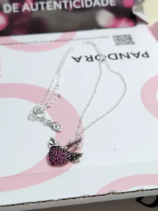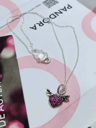 Collar de la marca Pandora con un diseño de corazón alado. - Colgante con forma de corazón. - Detalle de alas. - Cadena plateada. Como nuevo y con caja original