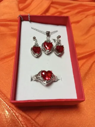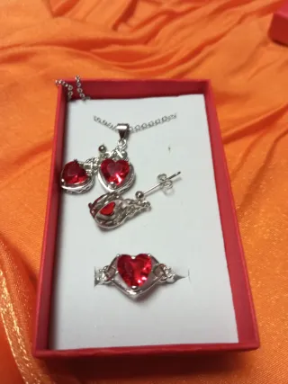 Conjunto de plata con corazón rojo
