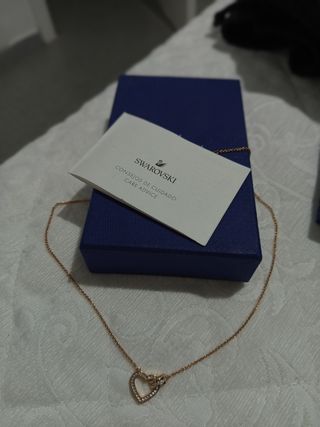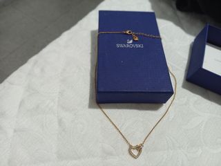 Precioso collar de la marca Swarovski. Es de color dorado y plateado, con un diseño de corazón. Se encuentra en perfecto estado. - Elegante colgante con circonitas. - Cadena fina y delicada. - Ideal para cualquier ocasión.