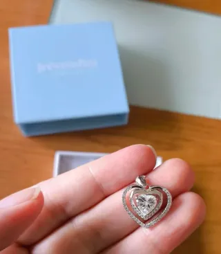 Elegante collar para mujer con colgante de corazón. Una pieza delicada que combina tonos plateados y azules. - Colgante con forma de corazón. - Cadena fina y resistente. - Detalle de pequeñas incrustaciones en el colgante principal.