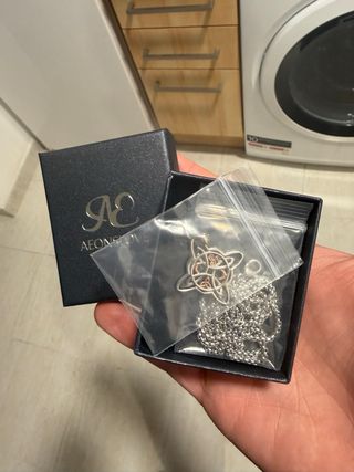 Elegante collar para mujer con un diseño moderno. Un regalo ideal para Navidad de acero policromado que no se pone negro ni se estropea - Colgante con el nombre de la marca. - Cadena con acabado plateado. - Detalle del nombre en dorado.