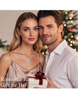 Collar Mujer con Rosa Colgante Collar Plata de Ley 925 Joyas Regalo para Mujer Novia Esposa Madre Aniversario Cumpleaños Navidad San Valentín. 🔔Plata ley 925. 🔔Corazon azul Dorado. 🔔Nuevo, conserva precinto.