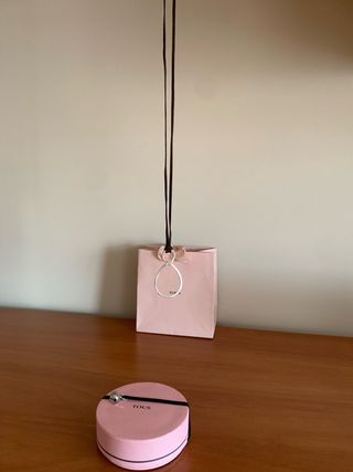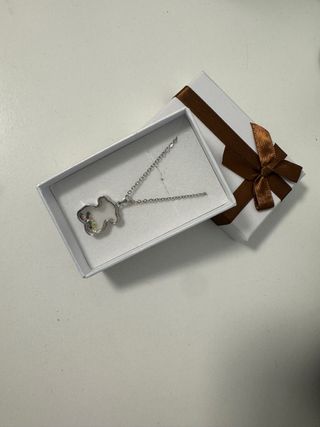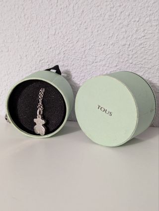 Collar de la marca Tous con un diseño de oso. - Material: Plata. - Color del collar: Plateado. - Color de la caja: Rosa.