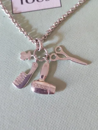 Collar de plata con motivos de peluquería Tous original Medida del collar 44 cm Descatalogado - Dijes: peine, secador de pelo y tijeras. - Cierre de mosquetón. - Diseño delicado y original.