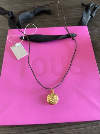 Collar de la marca Tous totalmente nuevo para estrenar. Es de plata vermeil amarilla con cadena de cordón marrón ajustable. Con su caja, bolsa y etiqueta.