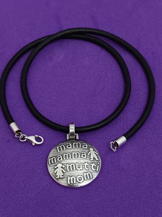 Collar de cuero negro de la marca Tous con varios charms. - plata de ley. - Detalle de letras MAMA - Incluye charms de estrella, oso, flor y corazón. - Cierre de mosquetón.