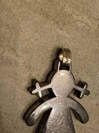 Collar de la marca Tous con colgantes de niña y niño. - Colgantes de plata. - Cordón negro.