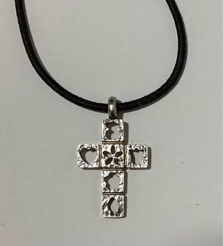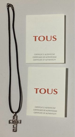 Collar Tous Vintage, con 22 años de antigüedad. Una joya vintage que destaca por su diseño original La cruz de plata con detalles calados reflejan el diseño distintivo de la marca. Mide 33 mm y se acompaña de un colgante de cuero negro que aporta un toque moderno y un contraste elegante. El cierre, también en plata, completa el conjunto con una terminación de alta calidad. Incluyo los certificados de autenticidad de Tous, que no solo garantizan la calidad de esta joya, sino también su fecha de fabricación. Una opción ideal para quienes buscan una pieza auténticamente vintage y con personalidad. ¡Consúltame cualquier duda!