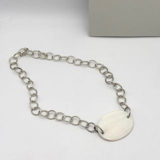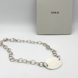 Elegante collar de la marca Tous con cadena. - Diseño circular con detalles en nácar. - Acabado en plata.