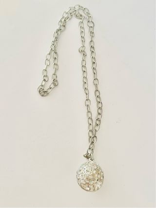 Preciosp collar plateado estilo TOUS, nuevo. Es un collar muy elegante. - Diseño de bola hueca con detalles florales calados. - Cadena de eslabones.