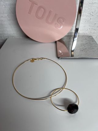 COLLAR CERCLE RIGIDO DE LA COLECCIÓN EUGENIA BY TOUS EN PLATA BAÑADA ORO, vermeil. CON DETALLE AGATHA AHUMADO GRIS- MARRÓN. RECIEN PULIDO EN TIENDA TOUS COMO VEIS QUE ESTA IMPECABLE. LO ENTREGÓ CON NUEVA CAJA TOUS. ARO DE 12 x 15 cm y largo total con colgante 16 cm.