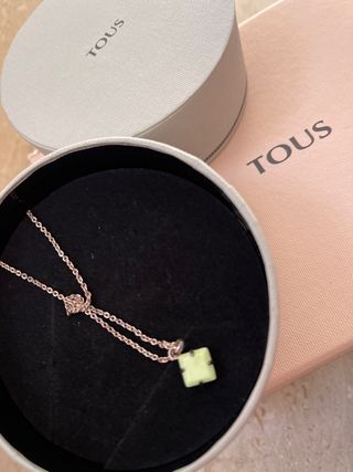 Collar y colgante las dos cosas originales El colgante era un coletero por eso lleva ese agujero, lo modifique a colgante en la tienda tous La gargantilla es de silicona y plata El colgante mide: 4,5 cm sin la argolla El collar mide: 38,5 cm