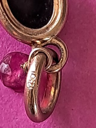 Precioso colgante Tous de plata vermeil con una gema negra ovalada y una pequeña gema rosa. Es una pieza delicada y elegante, ideal para cualquier ocasión. - Plata Vermeil - Gema negra ovalada - Pequeña gema rosa No incluido collar de la última foto. No hago envios, solo Valencia, en mano.