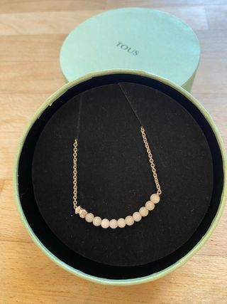 Elegante conjunto de collar y pendientes de la marca Tous. El diseño circular está adornado con una variedad de piedras de colores y perlas. - Collar con colgante circular. - Pendientes a juego. - Detalles en oro y multicolor. Pendiente soy Collar Straight disco bañado en oro de 18 kt sobre plata rosa con perlas y gemas se vende también por separado. Pendientes pegados Collar, le falta una perlita (en la tienda Tous te lo reparan) Precio en tienda de pendientes (59€) y del collar (89€), un total de 150€ aprox